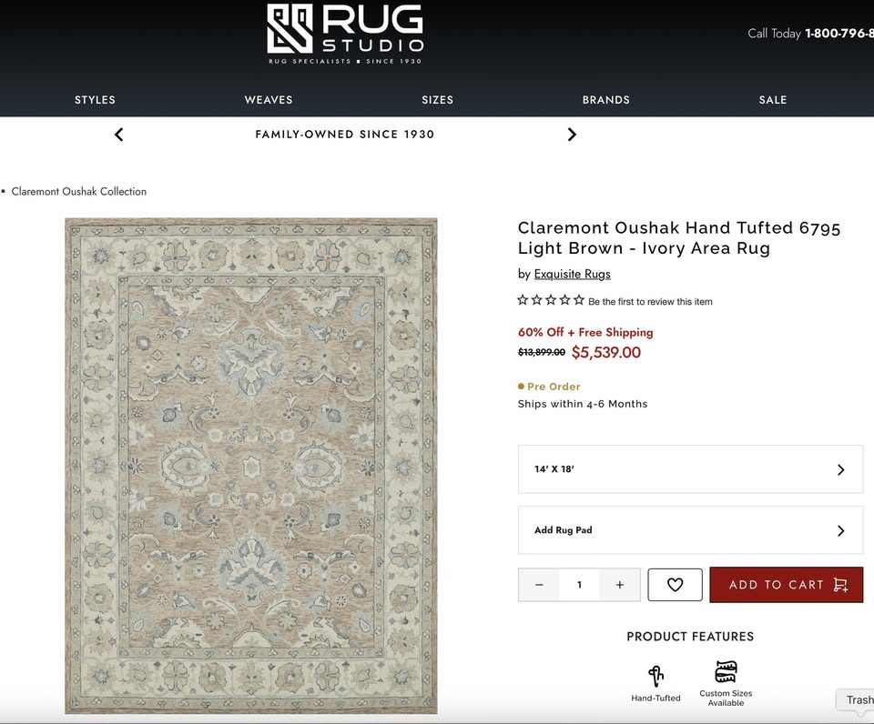 **It came with a rip towards the edge of the rug. Can be hidden with furniture on top. My price is 80% off retail price due to the rip.*