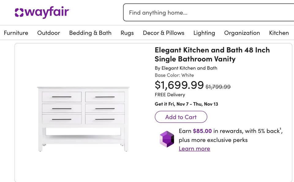 48″ White Single Bathroom Vanity