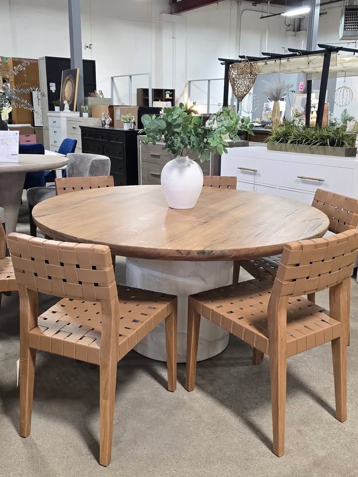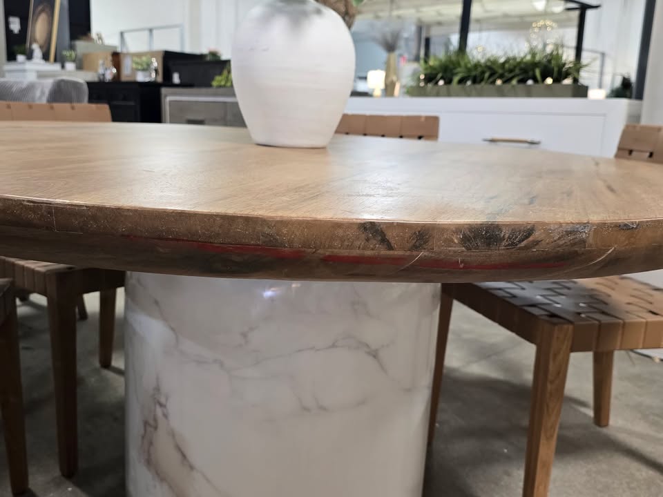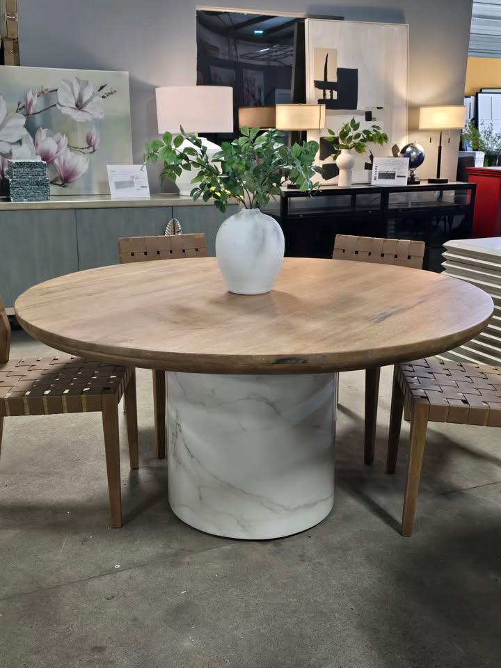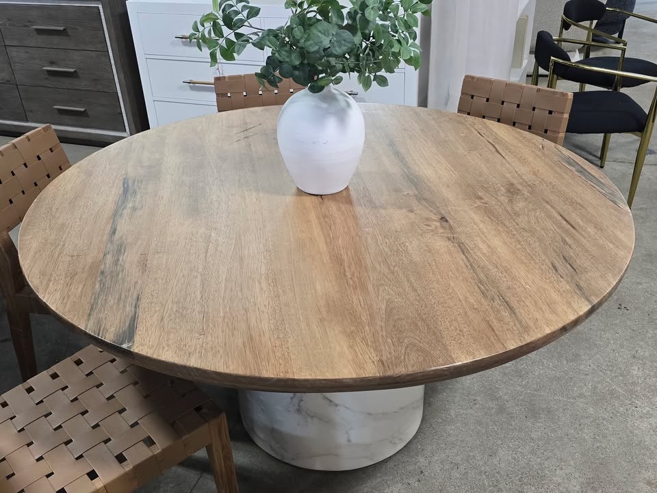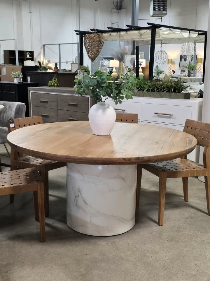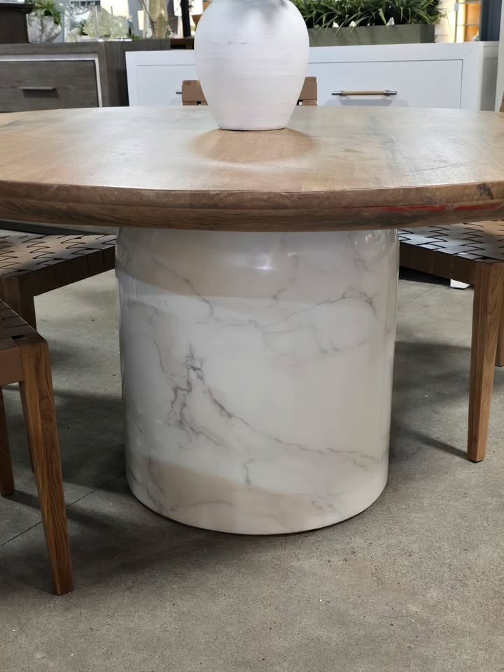 60″ Solid Wood & Marble Dining Table