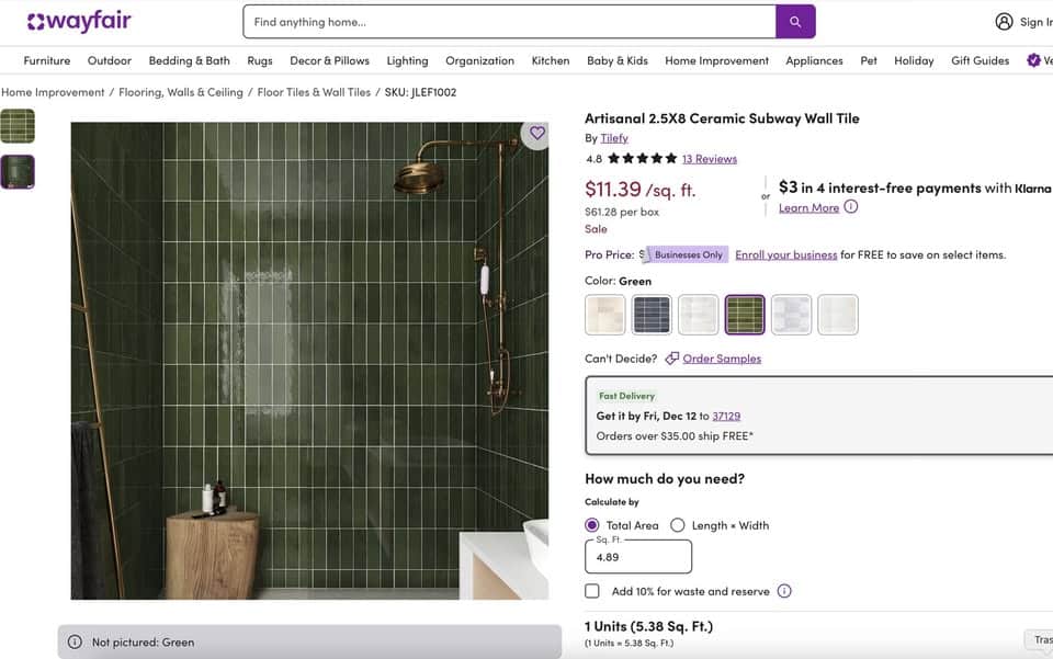 I have 12 total brand new boxes of this beautiful tile! Total square ft is 64sq ft.