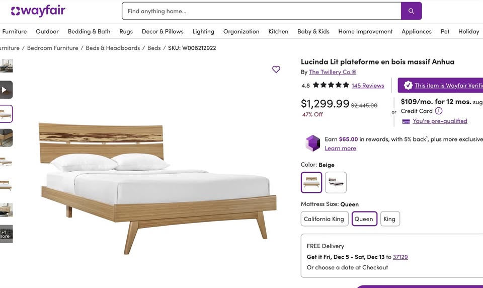 Azara QUEEN Mid Century Modern Platform Bed
