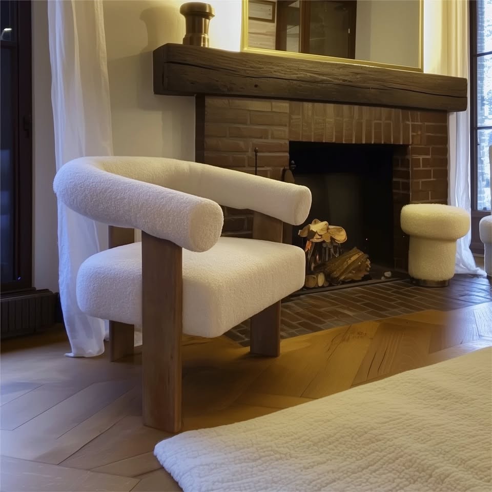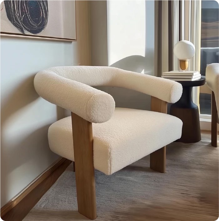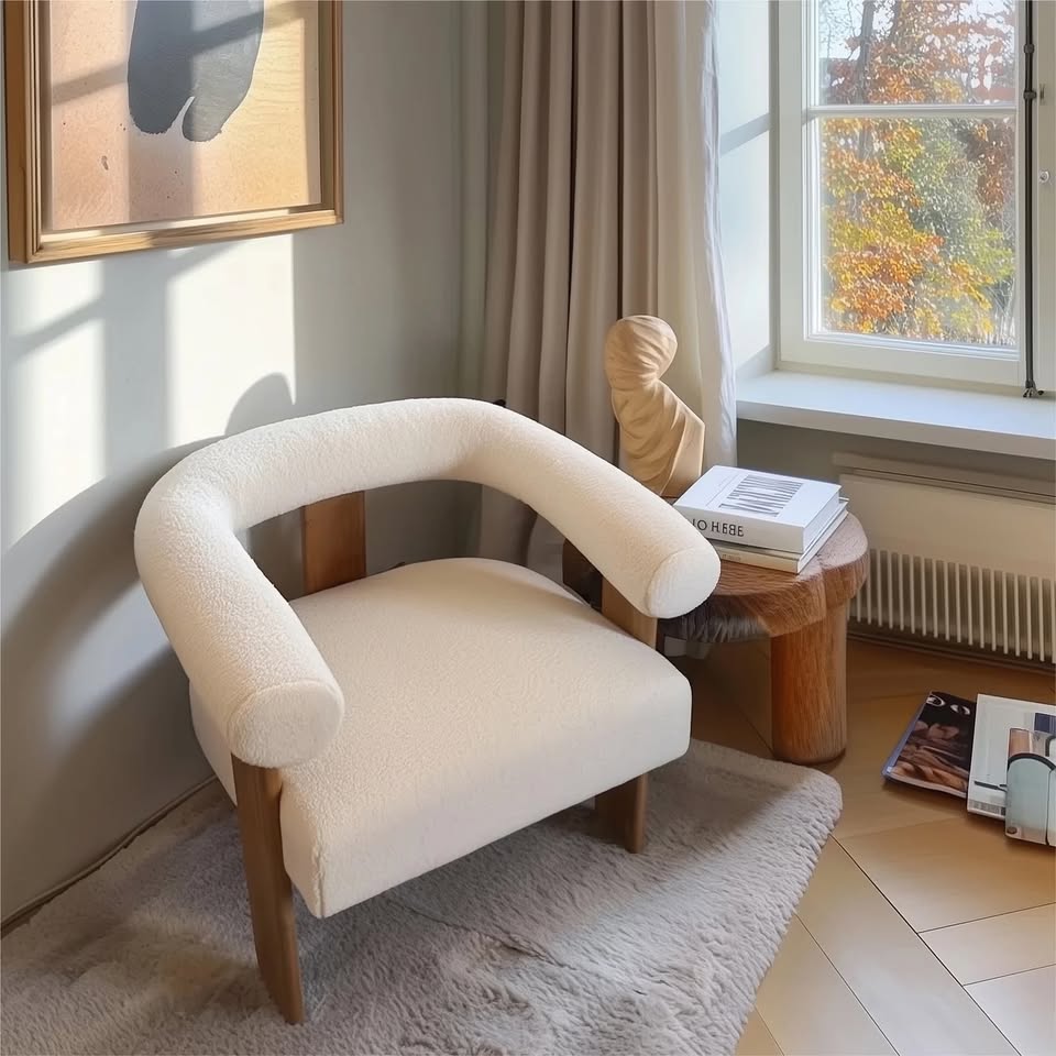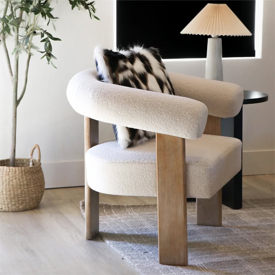 Upholstered in ultra-soft faux sherpa fabric with a white-washed rubber wood frame.