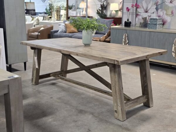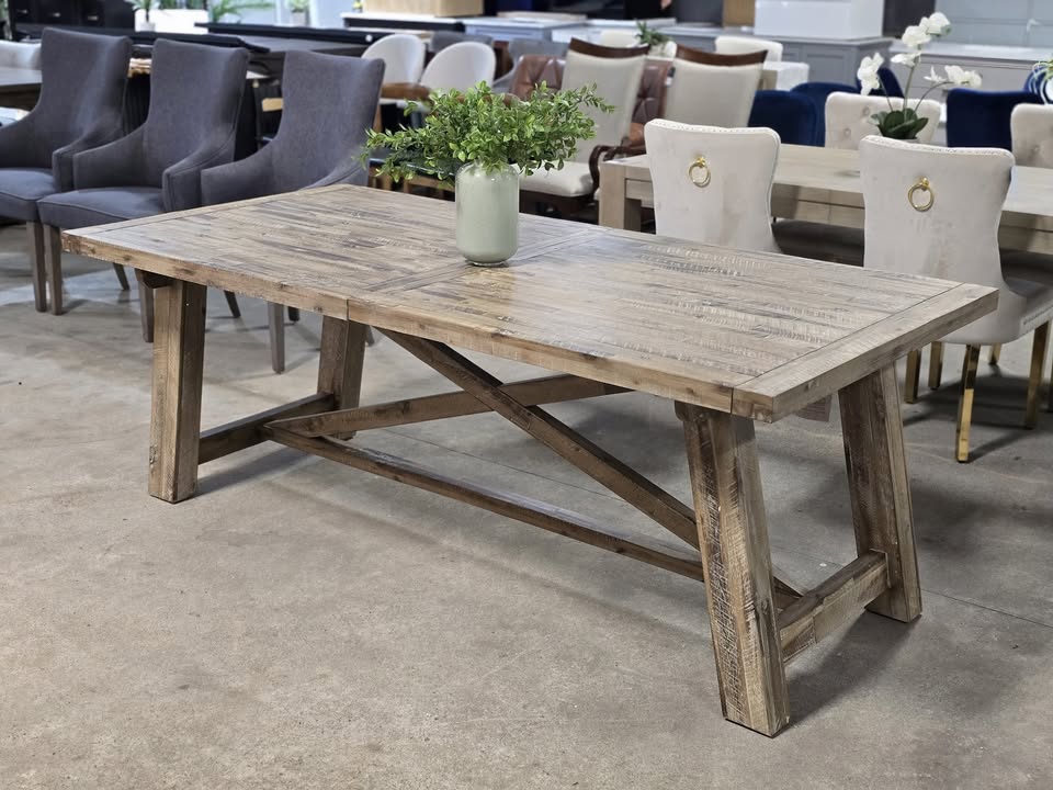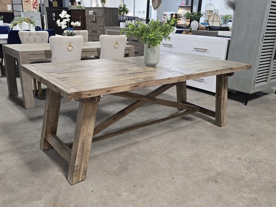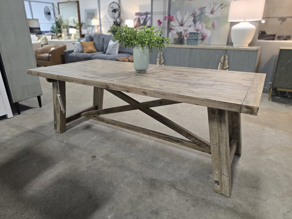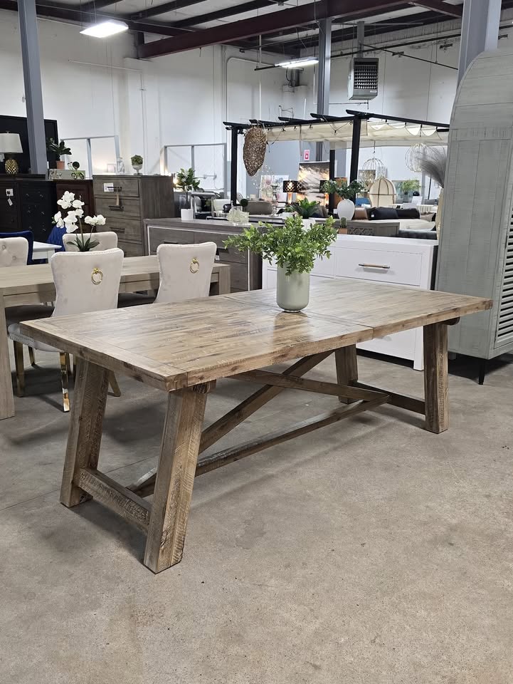 Measures 83" long without the leaf and 103" with the leaf installed.