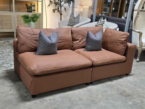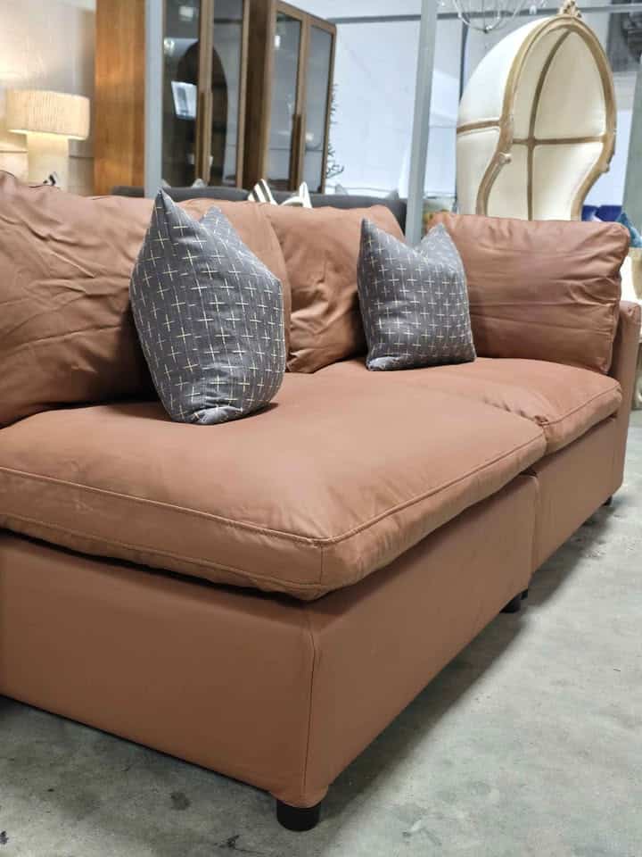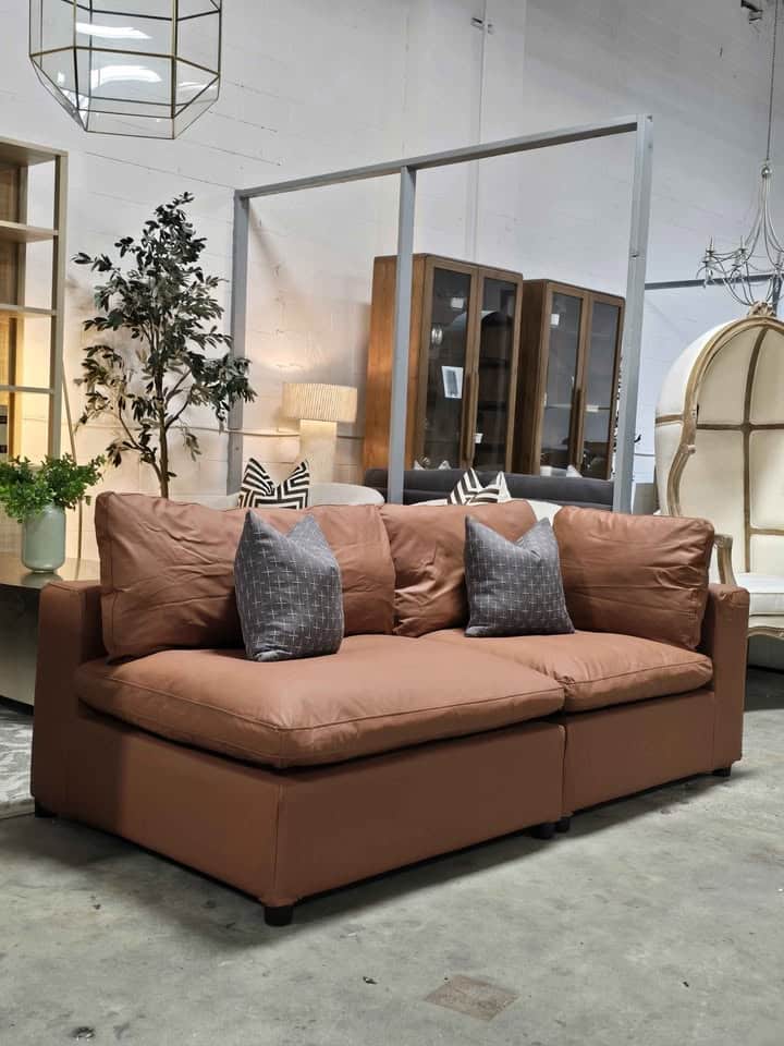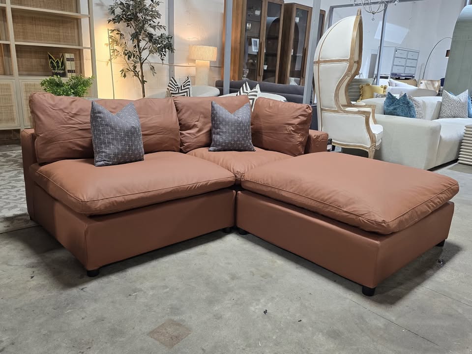 Brown Leather Cloud Loveseat & Ottoman