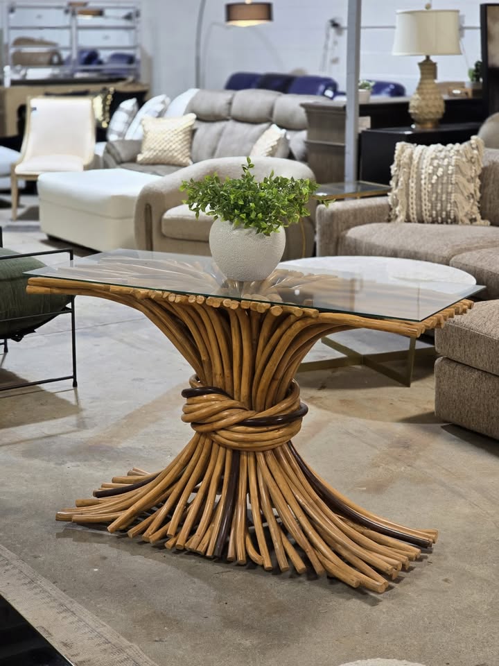 It takes one artisan over a week to bend and intertwine dozens of rattan poles on our Knot Console table. Re-enforced by hidden metal rods, this beautiful, organic knot is statement table.