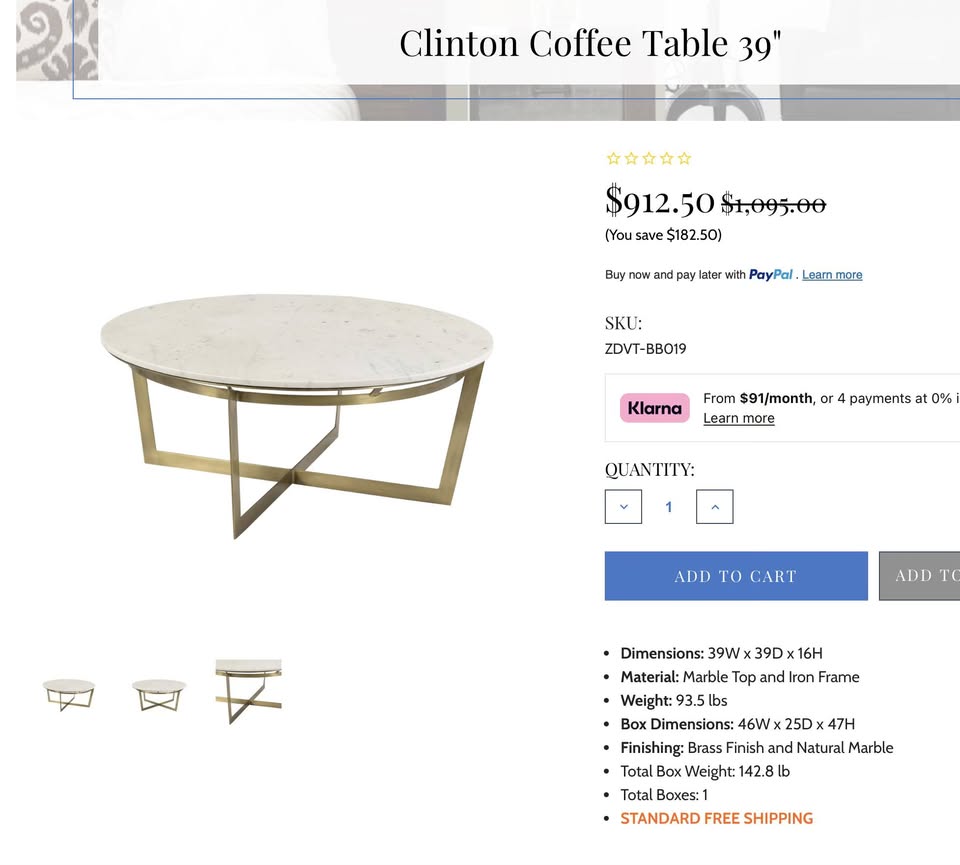Clinton Marble Top Coffee Table