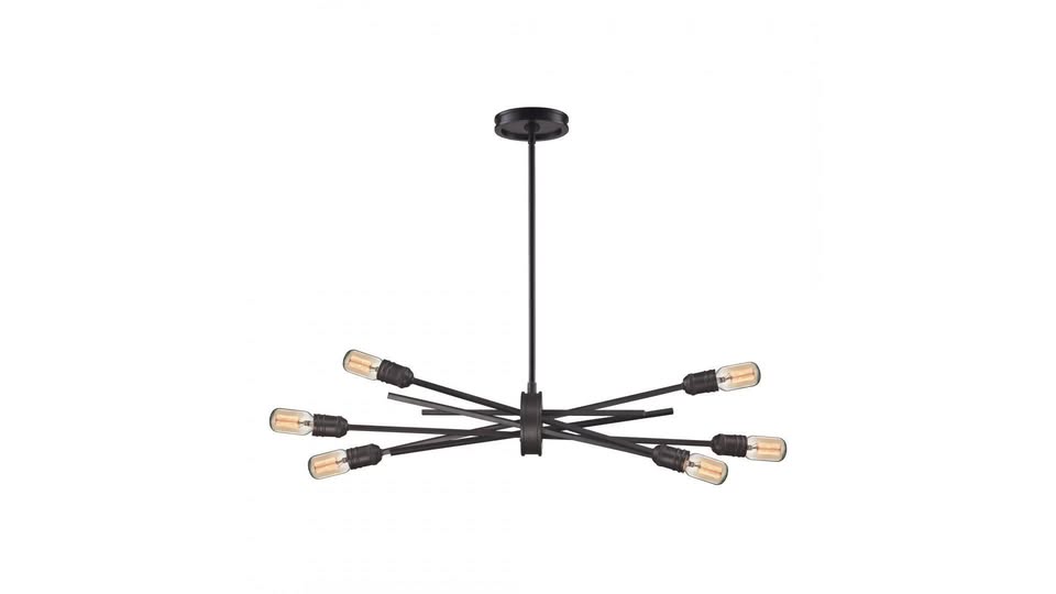 Features a unique linear design with unequal length arms that pass through the fixture's central connection. The metal arms can be easily adjusted from a near parallel position to a loosely gathered look.