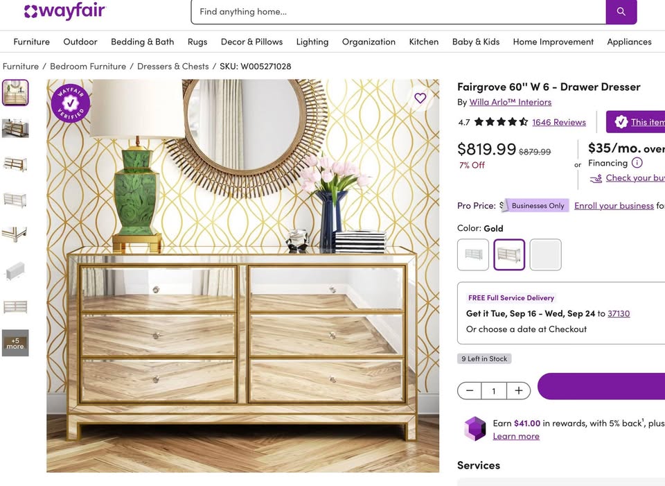 This is currently selling on Wayfair for $819.