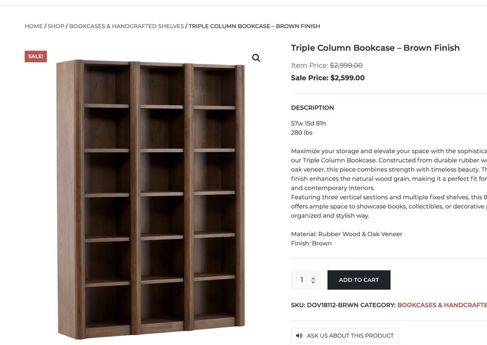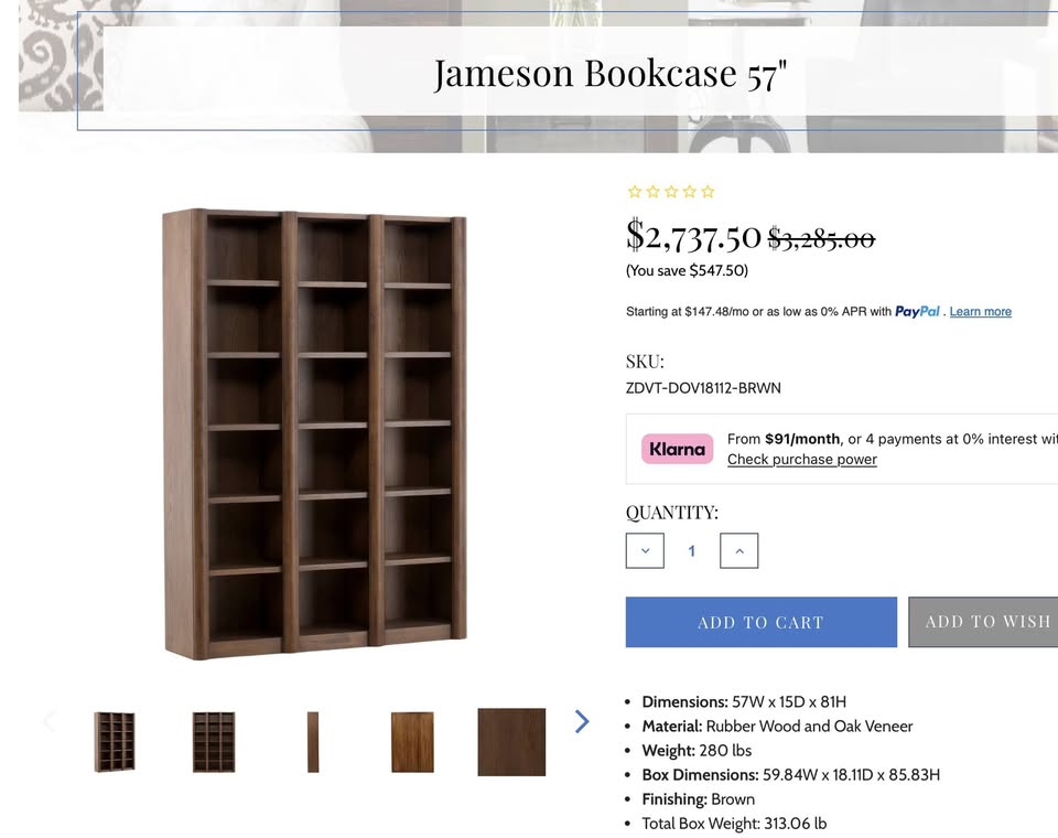BRAND NEW! Large, high quality bookcase by Dovetail Furniture!
