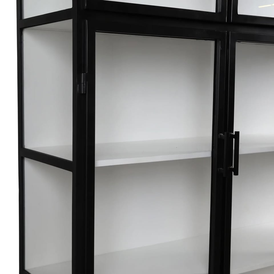 Iron and glass material in black and white finish.