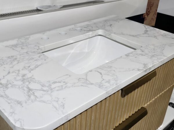 Has am Arabescato engineered stone top.