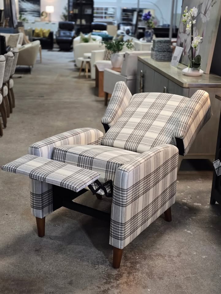 New! Beautiful and comfortable recliner. Push back recliner mechanism.