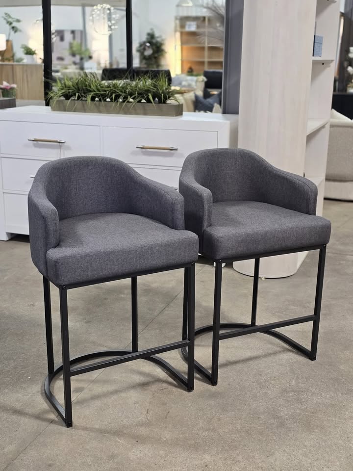 Set of 2 Grey Counter Stools