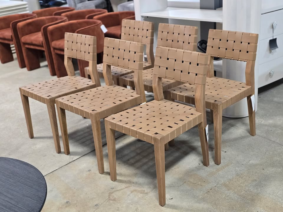 Set of 6 beautiful natural/saddle woven dining chairs.