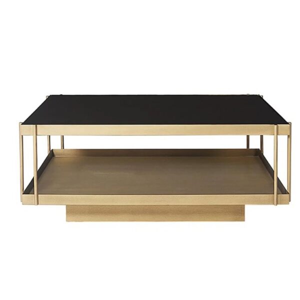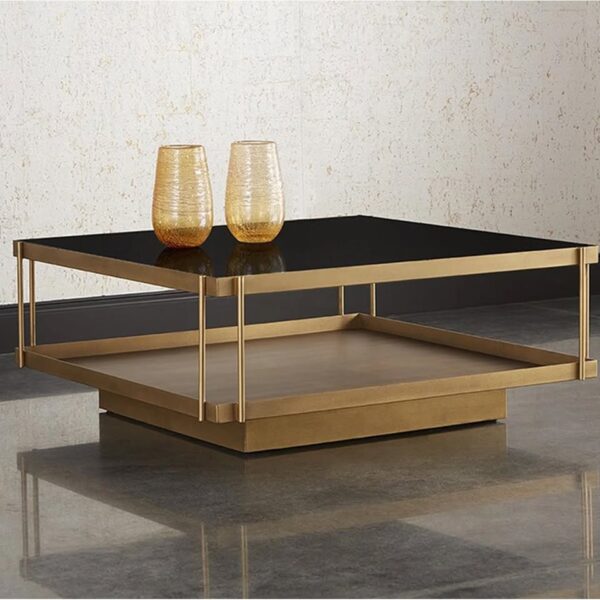 This coffee table combines mid-century style with an elevated flair. Designed with a stunning glass top and exposed antique brass shelf, this coffee table will draw attention in any living and lounge space.