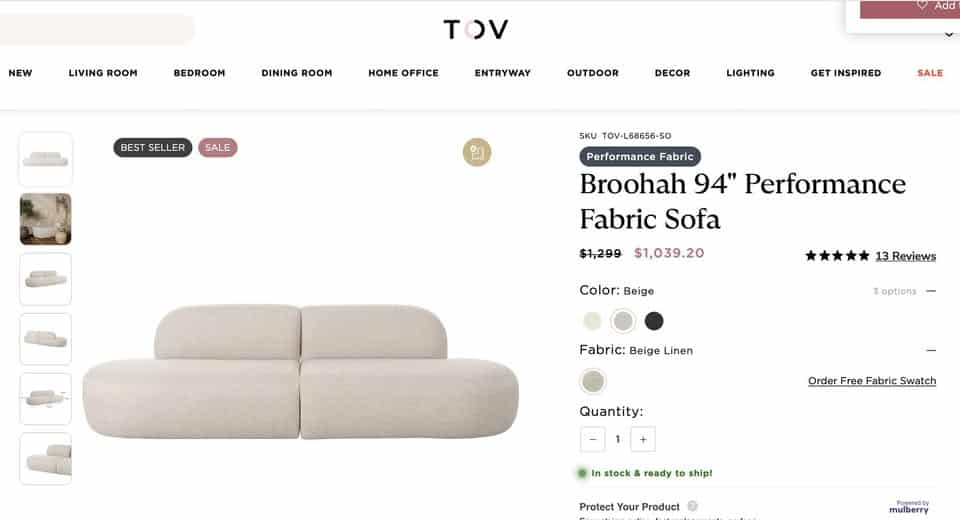 TOV Broohah 94″ Performance Fabric Sofa