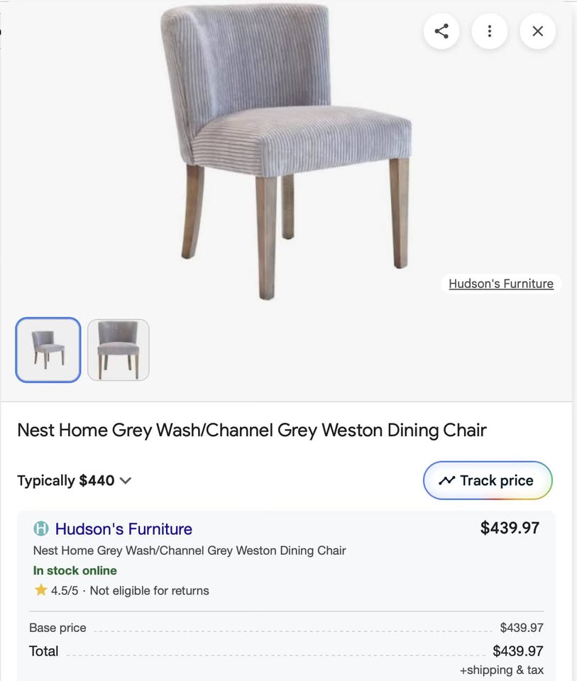 Great quality chairs! Brand is Nest Home Collections. These retail online for around $400 each!
